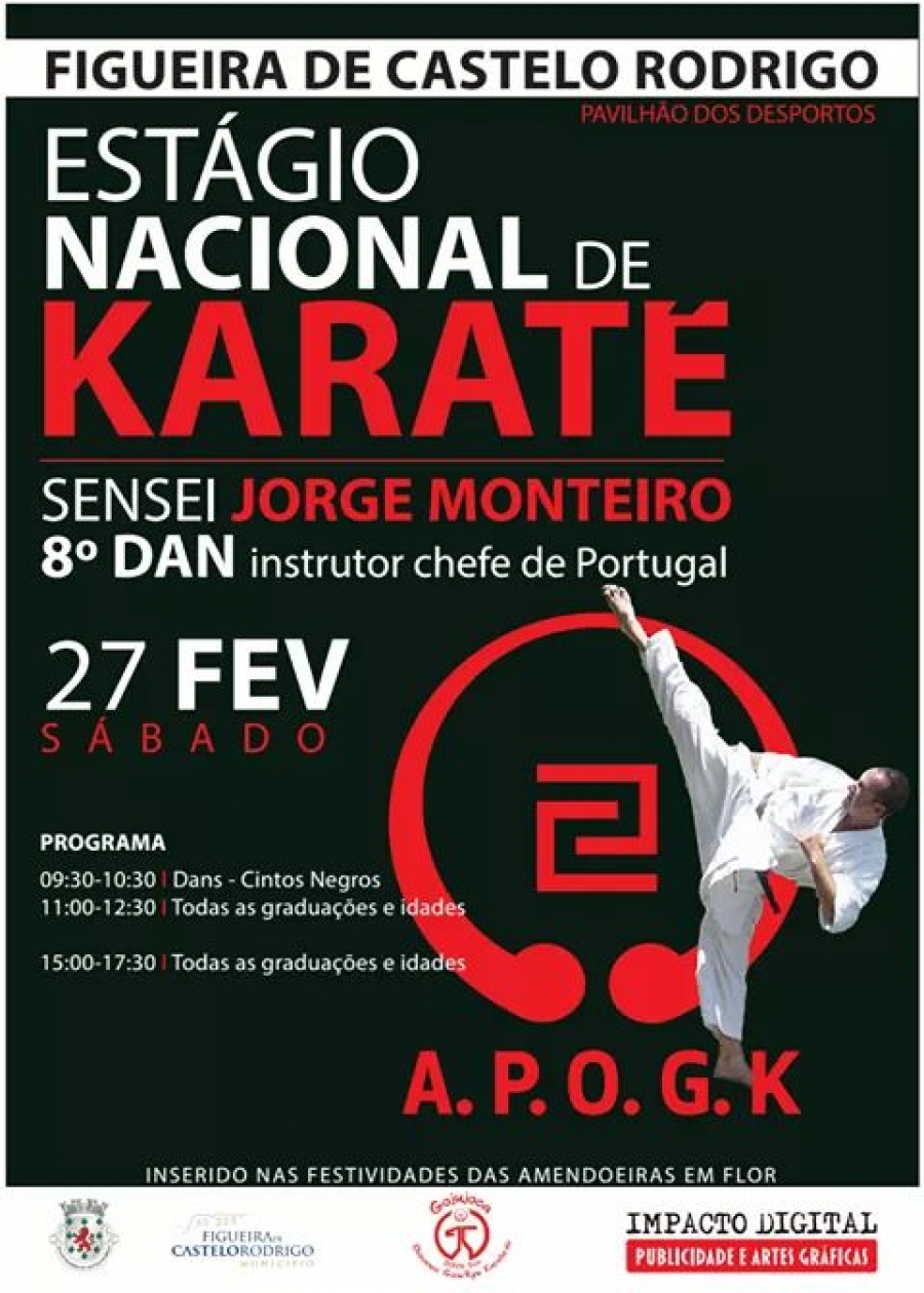 É já no próximo dia 27 de Fevereiro de 2016 que se vai realizar um Estágio Nacional – “Estágio das Amendoeiras em Flor”, com o Sensei Jorge Monteiro – 8º DAN – Instrutor Chefe de Portugal, em Figueira de Castelo Rodrigo.